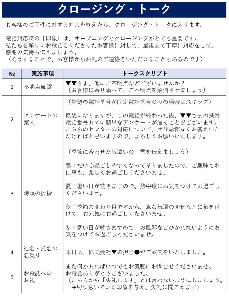 弊社が支援したあるコールセンターでは、元々、添付のような対応マニュアル(トークスクリプト)を使っています。